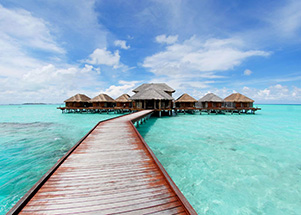 走近水上王國,首先會看到有個勇士沖浪通道,上面有座仿真茅草亭子,接著就會被一座巍峨的雪山所吸引,這里是喜馬拉雅雪人的家鄉,跟隨雪人可以攀上高峰,參觀山頂的滑雪小屋,在雪人家